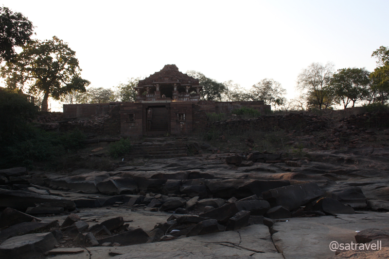 The ancient temples built with red sandstone in Hindu style situated aside the weathered and water eroded deep Menal gorge coated green by lush forest cover was a perfect blend of men’s desire and nature. Separated by the riverbed comprising eroded granite slabs, the poetic ruins of an ancient Palace as well as the temple complex dotted both sides of the now dry Menal. The steep rock-faces of the gorge bore marks of the flow of the Menal during rainy seasons. Green shrubbery of various shapes and sizes peppered the rock-faces as well as both the banks downstream. As regard the wildlife, currently the topography could unfortunately only afford some birdlife.