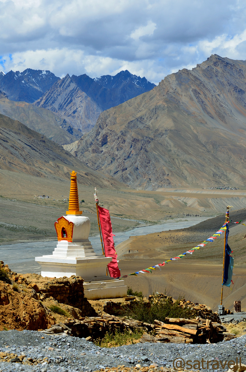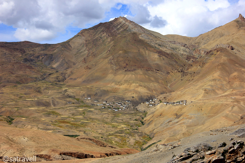 The weather after Rangrik started revealing its cloudiness, bit by bit, for the rest of the trip. Until now what we came across was the bluest sky that we could imagine. Passing through the settlements of village Sumling (3790m), Sherab Choeling monastery at Morang, Hull (3890m) as well as the Gyundi nala, we climbed to reach Pangmo (3950m) where it started drizzling albeit a light one. This windswept upper valley region Tud of Spiti is the least populated of the four regions – Sham, Bhar, Pin and Tud.
