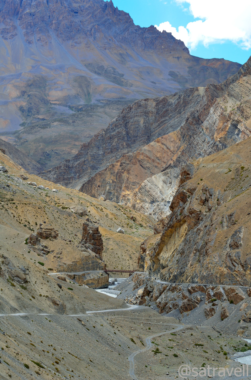 Even though we reached Pangmo by 1400hrs, the drizzle made us rethink about our plans to cross the mighty Kunzum La, later in the evening, where weather can get real nasty at times. A typical Spiti afternoon included headwinds, growing in velocity as the day progressed, and sunrays piercing into the skin. The valley receives very little rain round the year and monsoon spells are mostly dry. We didn’t want to take any risk and planned to call it a day at village Losar still a couple of hours away.