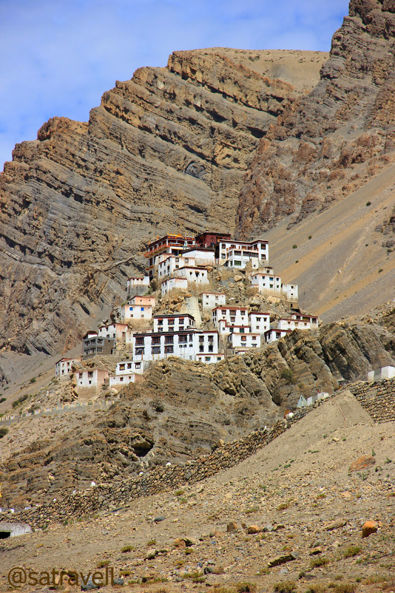 The tarred but potholed road to Kibber climbed in a series of easy hairpin bends and loops. Like most valley roads, this one was narrow too and was etched on a vertical face of rock. The village Chicham was visible across the other side of the deep canyon. Claimed to be the “highest inhabited village in the world connected by a motorable road and with a voting ballot”, Kibber (4210m) is a friendly village comprising stone-built-houses, with typical dusty contracted paths, located on a picturesque topography. Although lacking the market-comforts of Kaza, Kibber is any day a better place to put up than Kaza. Situated just at the village entrance, Norling Guesthouse is the place to stay and offers good food as well.