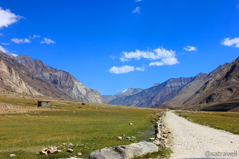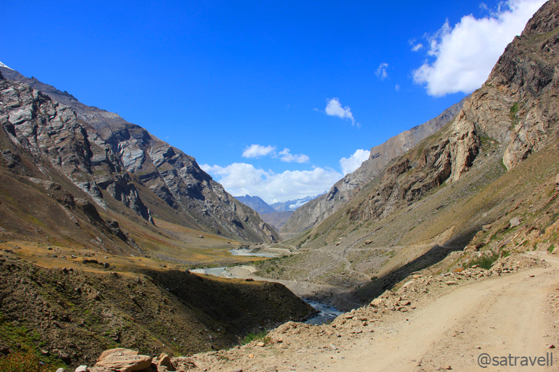 As the tarmacked road ceases to exist before approaching the Parkachik ridge, the narrow bumpy motorway ahead often diverges, in form of shortcuts, for a few kilometres to converge again. In a less-frequented valley with zero help from sign-boards, such diversions may confuse initially but as a golden rule keep yourself as lower as possible and stay close to the river alongside its right bank.