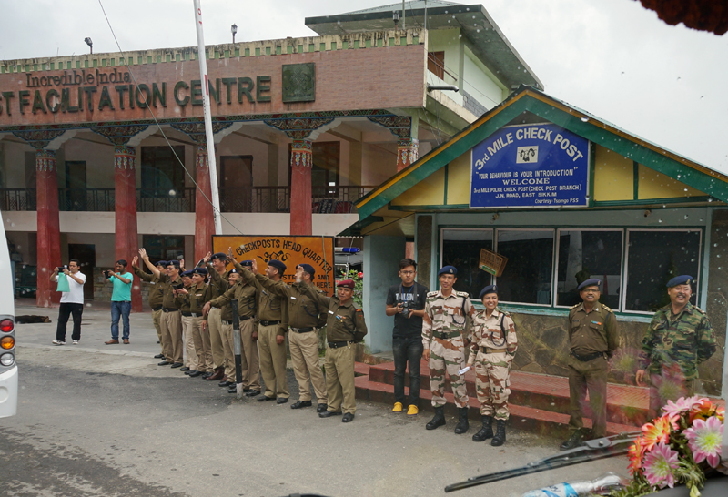 Slowly we inched ahead on a narrow stretch of the road which was notorious for landslides. With the BRO earthmovers parked regularly, the condition of the road reflected on the emergency situation that might arise just anytime during a rainy spell. Vishal, our sturdy Sikkimese driver, seemed to be a total professional with his job. When he was not manoeuvring the vehicle through treacherous patches, he would intelligently plug-in his pen drive to play either local or Bollywood songs only to be stopped later by someone from the passengers.