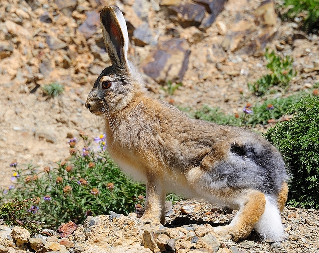 A Tibetan Woolly Hare; Descriptions recall that visitors encountered bands of wild animals in the region – I too glimpsed many particularly shy marmots and hares. Photo by Jen Reurink