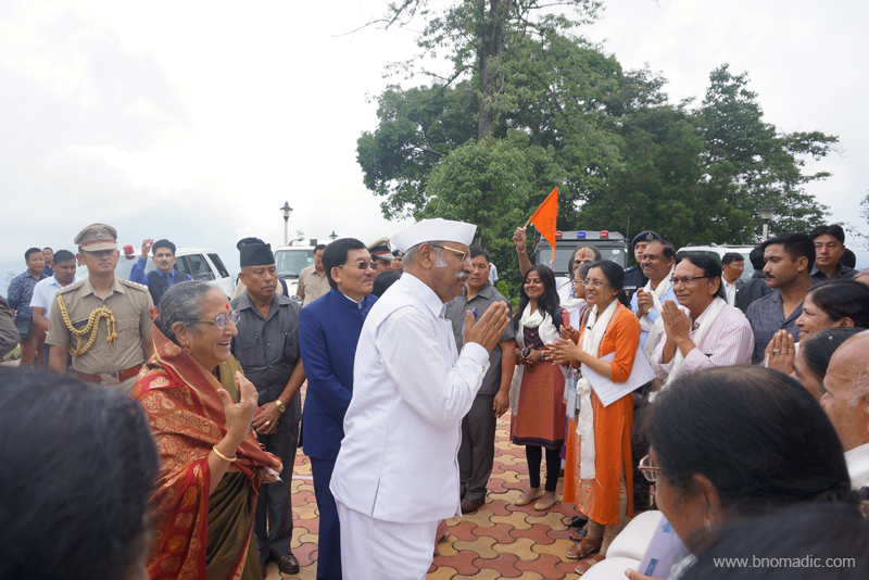 Following morning, the first batch was accorded an unprecedented welcome at Gangtok. It had the honour of being attended by the Governor, the Chief Minister along with the entire cabinet and state top machinery at the Governor’s House, the historic White’s Residency that has silently been observing the changing political landscape of Sikkim for over hundred years. After the speeches and a bara luncheon, the participants were presented with a souvenir by the Government of Sikkim. Another group photo with the chieftains; the final one, and we were packed off to the plains to board our flight to New Delhi.