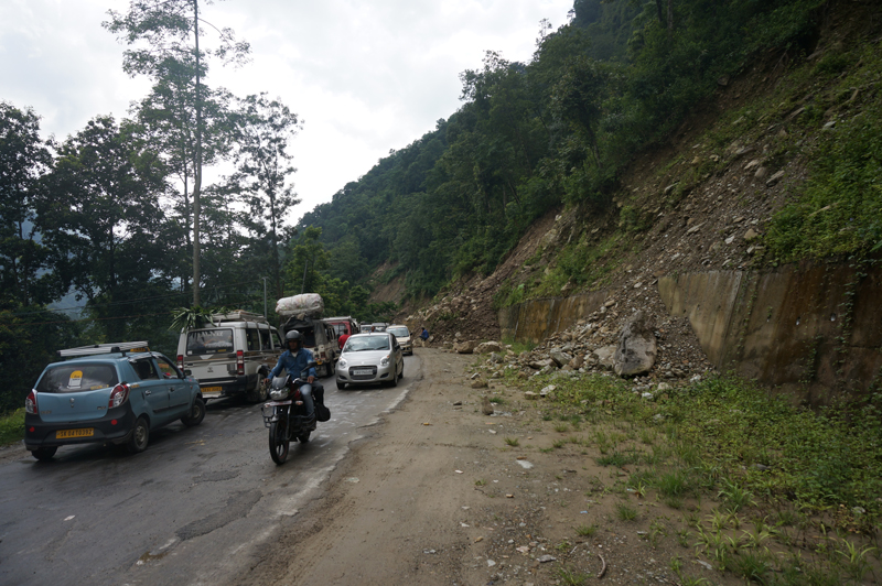 The weather was indeed very bad that day. As we left the Governor’s House at Gangtok, our driver informed us that the road ahead of Teesta has been blocked since morning because of multiple landslides. The last minute plan was to take a diversion to Darjeeling from Teesta and reach Siligudi via the touristy hill station famed for its tea cultivation. The diverted route was of course a tad lengthier but was more scenic and greener. Crisscrossing the narrow (but safe) roads passing through tea estates, we reached our guesthouse at Siligudi just before dinner time. On the way down from Gangtok, the highway-bound fun was limited to occasional tea or refreshment stops.