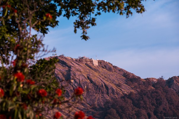 The Kartik Swami Temple atop the Karoch Parvat shining in the morning sun. Photo for bNomadic by Sarabjit Lehal. Please visit Flickr for more images from the region