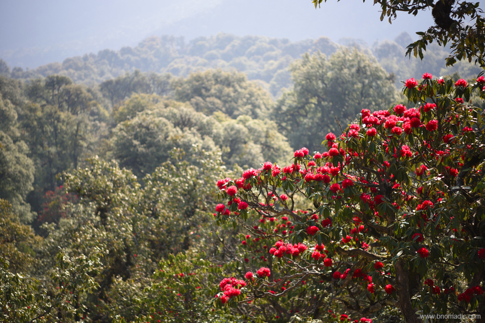 The hazy morning view, Rhododendrons, Oaks and the trail. More images from the region at Flickr