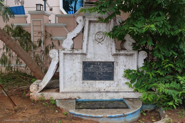 Facing the waves of the Bay of Bengal, the debris of the Town Hall, once known as Hotel de Ville and Mairie, lies scattered just next to the war memorial constructed by the French to commemorate the Pondy soldiers who died in the First World War. A favourite haunt of couples, the shady Government Park that has the famous Pondy memorial, whose pedimented facades are crowned by an urn, lies just behind. Along with this memorial which many consider an amusing surprise, a few columns that were brought from Gingee to Puducherry after the capture of its Fort in 1751 add colours to the Park. Being one of the most photographed landmarks, the monument is a revelation for it is built in commemoration of a harlot, whose charity had made the direct supply of water to the town possible.