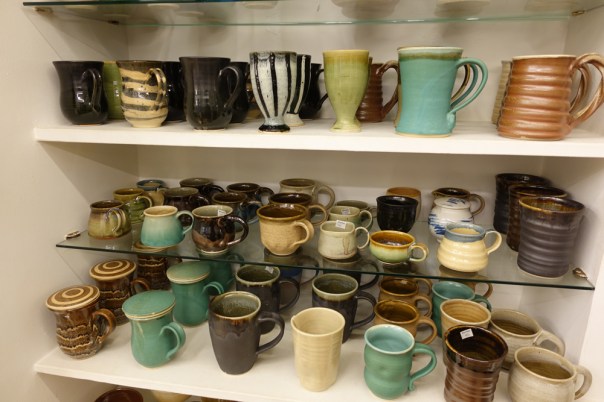 Tea pottery on display at an Auroville boutique store. More images from the region at Flickr