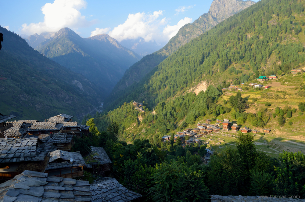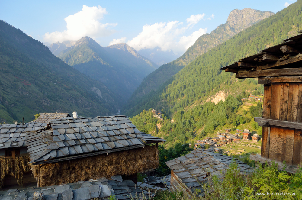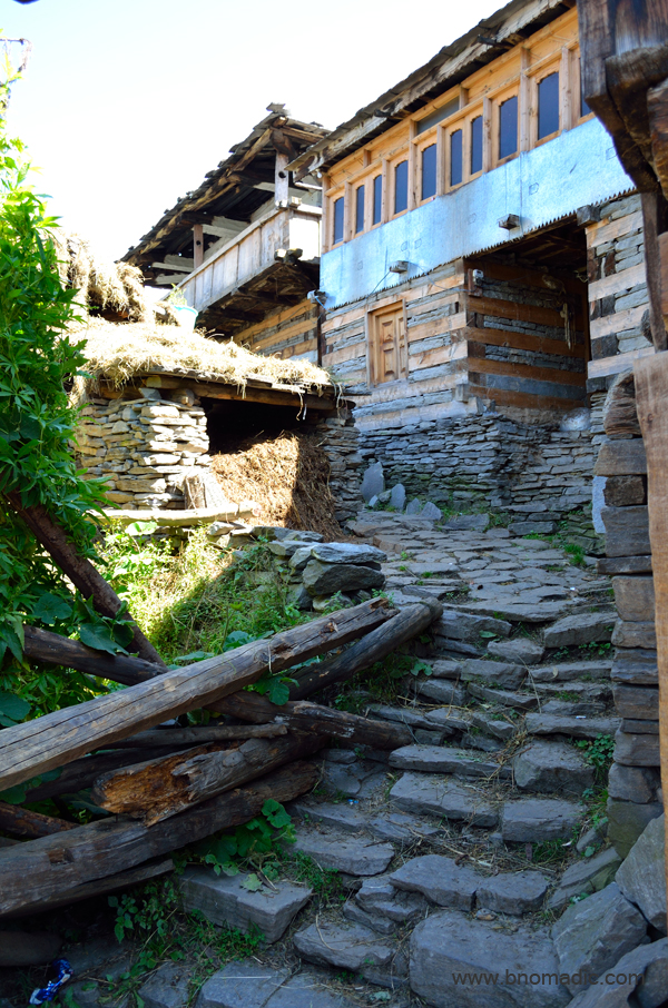 Already high from the impact of the raw folkways of Kwar, I was back at my room in the afternoon. The village was briefly blanketed by a cloud of mist in the morning today. Now with the clouds having boiled up from condensation, the valley wears a dreamy look as though it was kept under wraps in the morning. The cloud layer has completely vanished by now. A majority of the olden houses are built using deodar wood. With the lifting of mist, the already fresh air becomes filled with the resin smell of deodar.