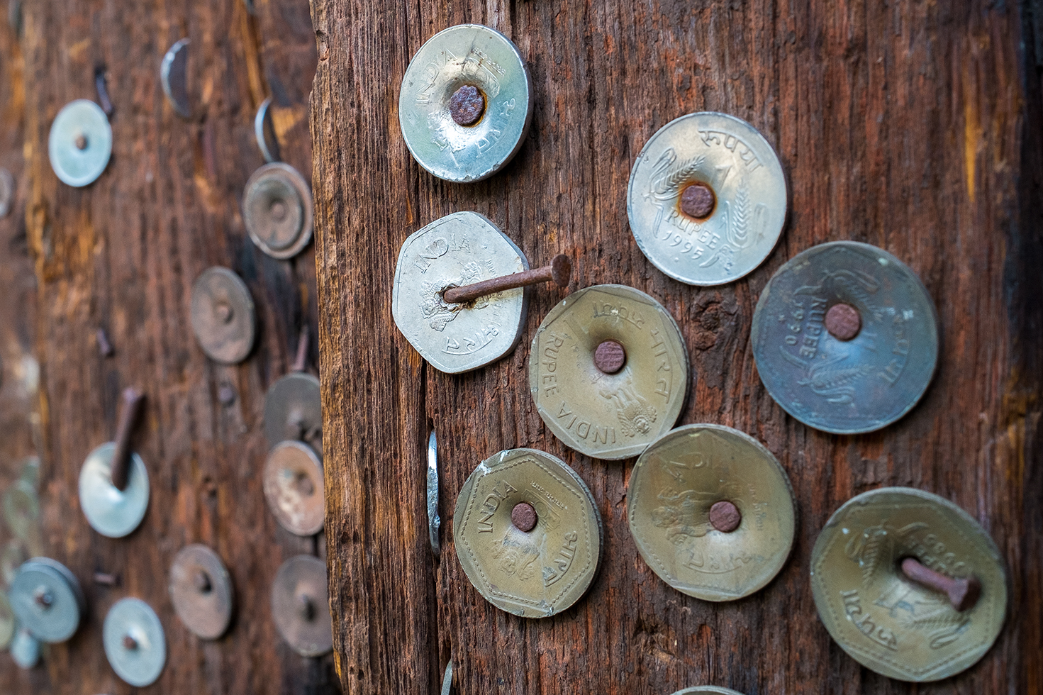 The doorway had numerous coins nailed on its frame; said to be signifying the answered prayers. More at Flickr