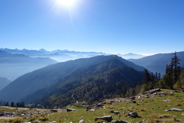 The sweeping mountainscape from the Chanshal encompasses magnificence as well as beauty. Most peaks of South Kinnaur and West Gangotri region are visible. More images from the region at Flickr