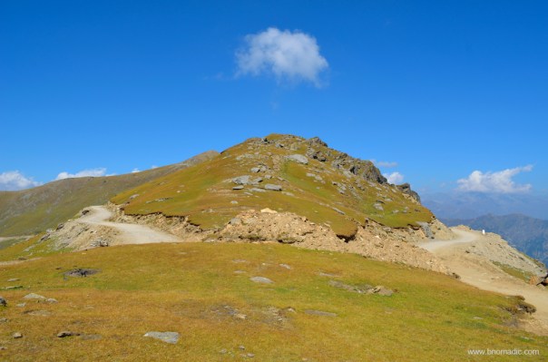 Atop the Chanshal Pass; the left road (in the frame) comes from Rohru and the right one leaves for Kwar