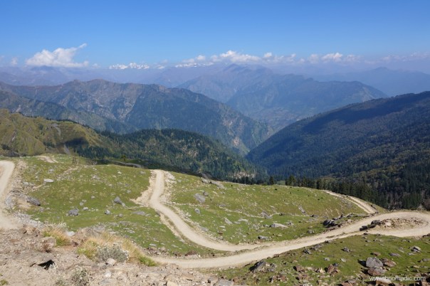 The road to Dodra Kwar descending in loops from Chanshal. Please visit Flickr for more images