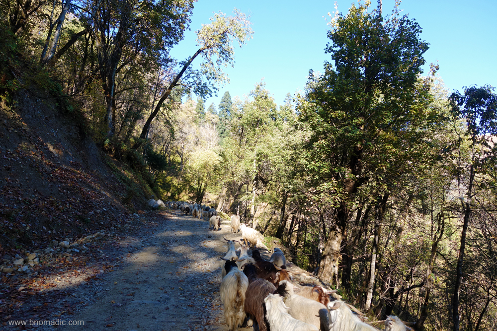 The early morning cold lifts to reveal school-bound children, tight-faced in anticipation of a long day ahead. A few kids, boys mostly, are hesitatingly trudging ahead. Most shops on the street have old-style wooden door shutters that are closed at this early hour. The tea and vegetable shacks are just beginning to open for the day’s business. As warned by the caretaker of the rest house where I am staying, I place an order for lunch in advance. Rajma Rice he confirms! There aren’t many options to eat in the village so one has to really manage his meals by placing an order in advance. You’d be really unlucky if someone, mostly officials and employees on visit who come unannounced, drops in and ask for something to eat before you could get a chance. I was unlucky on two occasions when someone else polished off the limited food which I had ordered for myself. Before I realise, a few villagers are running towards the bus stand where the bus is about to leave for Rohru. The morning bus from Kwar will reach Rohru in the evening on the same day. The road has opened up many possibilities for the local people and likewise the valley is now more accessible to travellers like me. Fortunately, it has not yet taken a heavy toll on the dense forest cover, culture and peace.