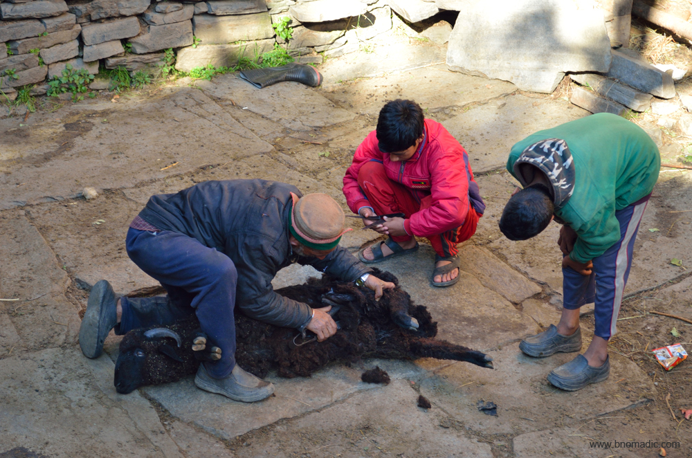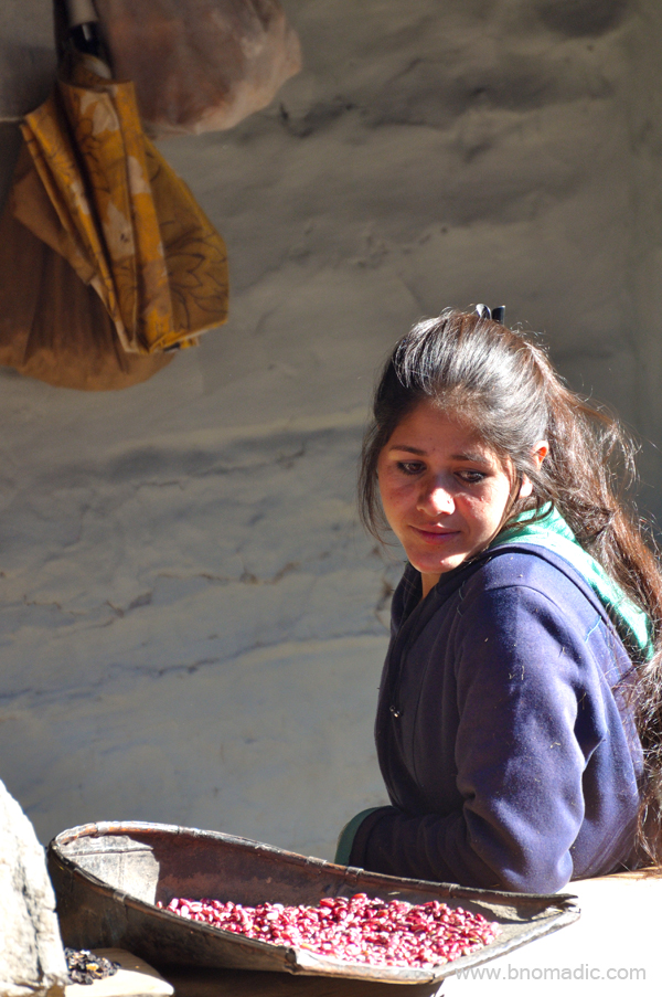 Leaving elderlies to guard, the young residents have left their seasonal agriculture produce to dry in the courtyard before proceeding to their fields. Mangal helps me with local names of the grains that I am not able to identify. I buy a local variety of rajma along with a few kg of chollai and koda at market rates. Agriculture produce comprising indigenous super foods forms the basis of their nutritious and traditional diet. Given the limited ability to grow, procure and process foods at such an enclosed harsh terrain, the frugal nature of the cuisine is but logical. I am happy to have procured some of the food grains I asked. Popular grains include wheat, buckwheat, barley, peas, mustard, bathu, chollai, mandwa, china, ogla, chavru, maize and some varieties of rice, etc. Fafra is one grain which is loved by Himalayan Bears that roam freely in the forests that surround the village. Otherwise, fafra is mostly used to distil liquor at home by the villagers. On festivals and special occasions, villagers consume copious amount of home distilled liquor for days together which is a socially accepted norm here.
