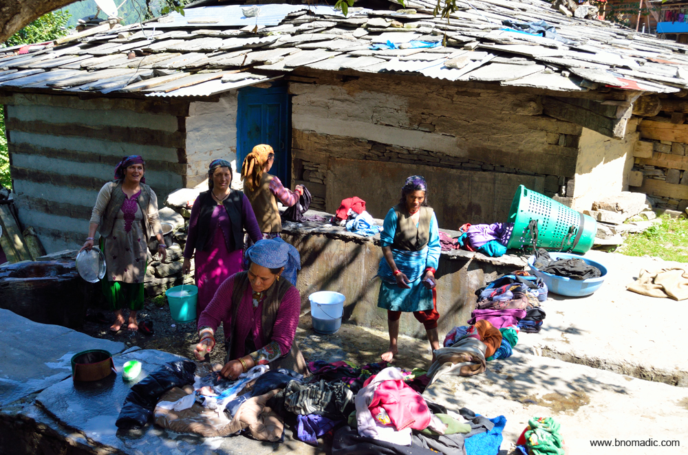 Community that washes together, stays together; the water is channelised in pipes from natural streams up the slopes