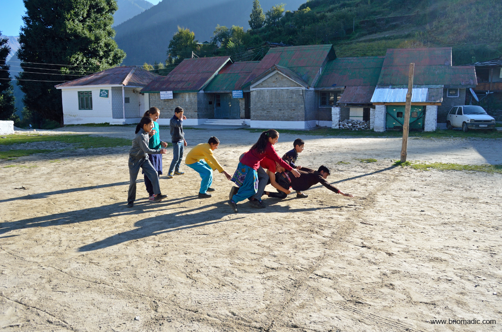 Morning game of kabbaddi. The pro kabbaddi fever has caught up with the school kids. Even though, this valley has no history of playing kabbaddi but the youngsters have learned the rules through TV only and often try to imitate their favourite star players. More images from the region at Flickr