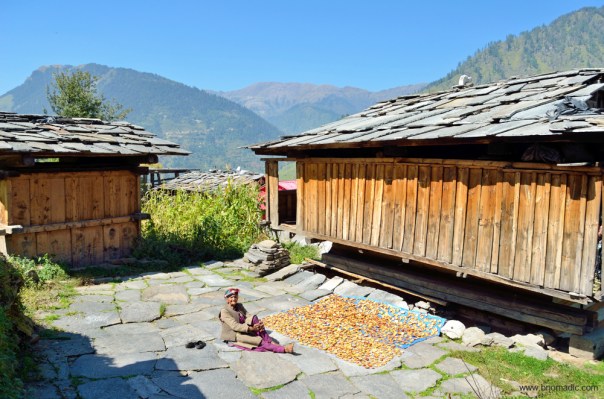 Mangal tells me that food habits of the locals are changing drastically with the coming up of road. Nowadays, land is increasingly devoted to production of cash crops like apple, almond and green peas. The government supported public distribution system had brought essential commodities, like wheat, rice, sugar, vegetable oil and pulses to the remotest village in the valley at much reasonable prices. I am a trifle disappointed to hear him say this. The next few days are devoted to exploring the lanes of Kwar, Pujarli and Dodra.