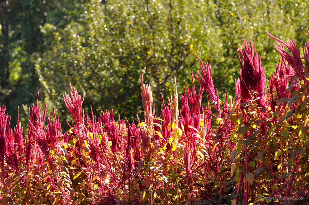 The red in the landscape is the soon-to-be-harvested Amaranth (chollai) crop. More images at Flickr
