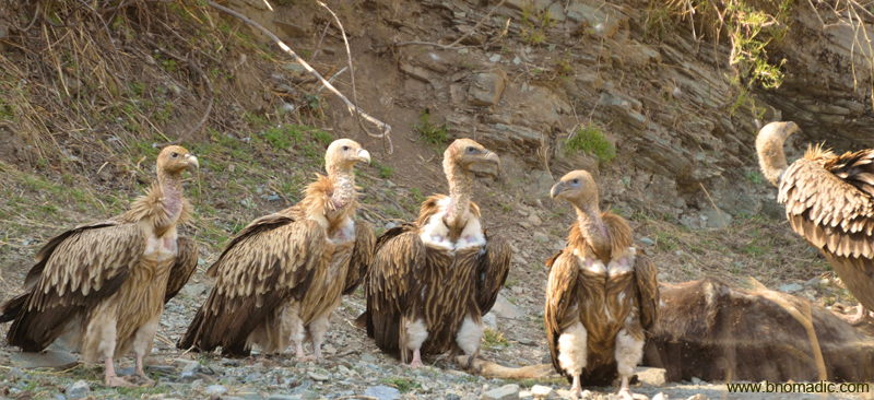 Himalayan Griffon Vultures feasting on a dead cow. More images from the region at Flickr